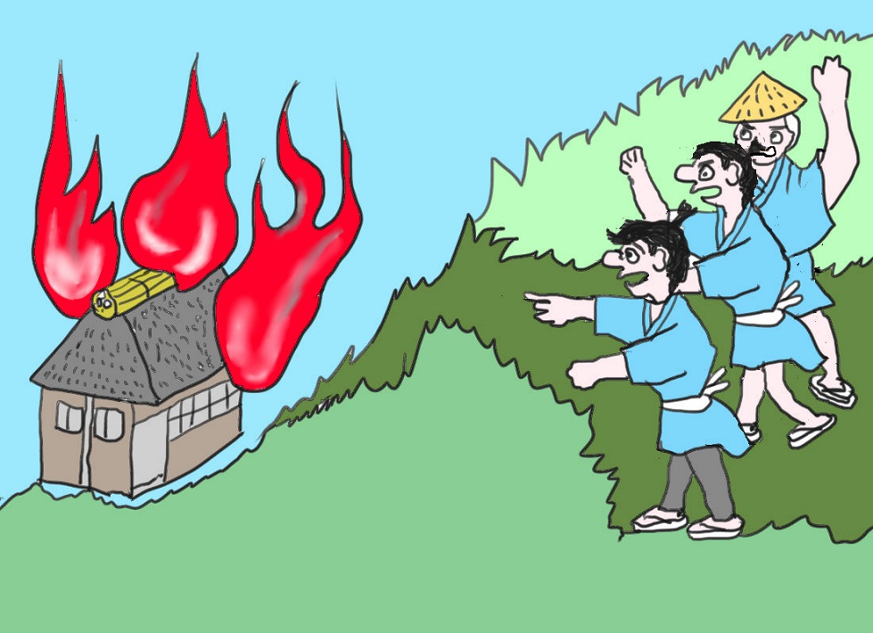K↑と、その時、少し離れたところに火事が起こり、火がどんどん立ちあがっているのが見えた。村人たちはキツネ狩りどころではなく