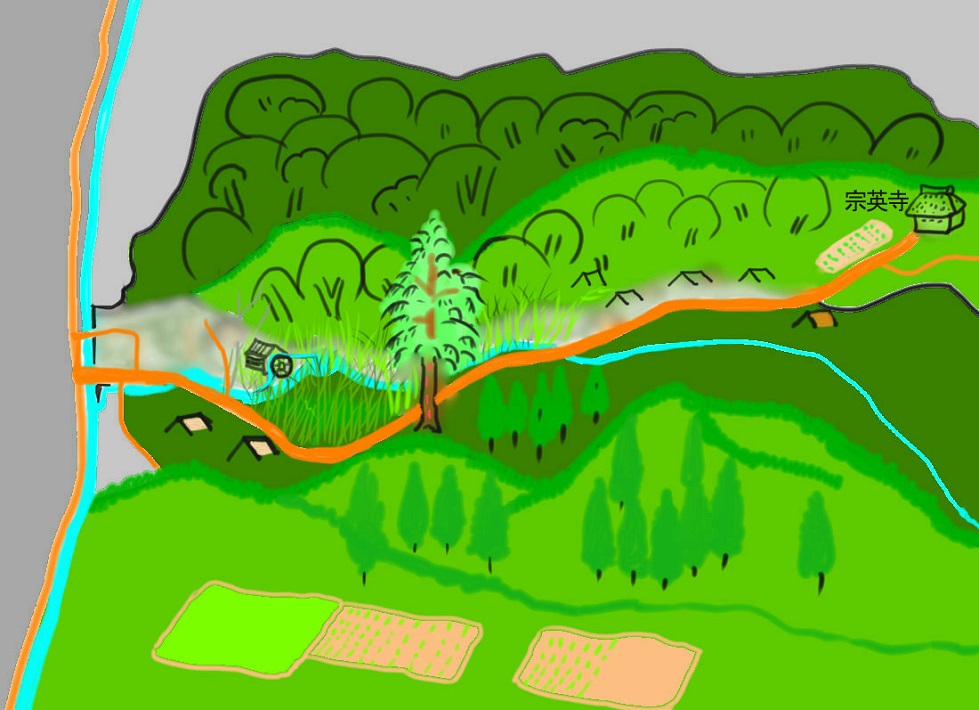 水車小屋があった。この水車は現在の志村正治郎さんの先祖が作ったもので、近所の家々もお金をはらって、使わせてもらっていたという。