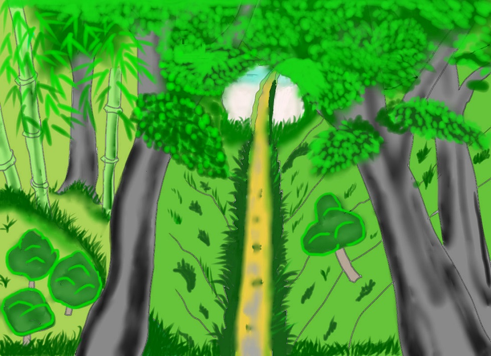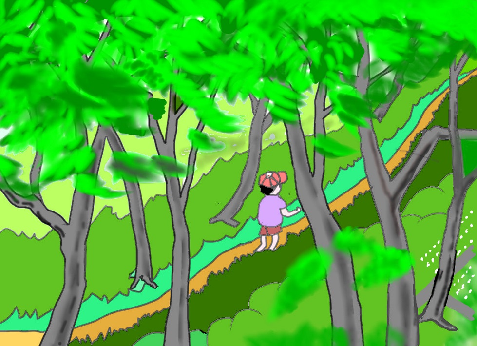 なり、林の中から先の方を見るとトンネルの出口に来た時、外の明るさが見えるように、