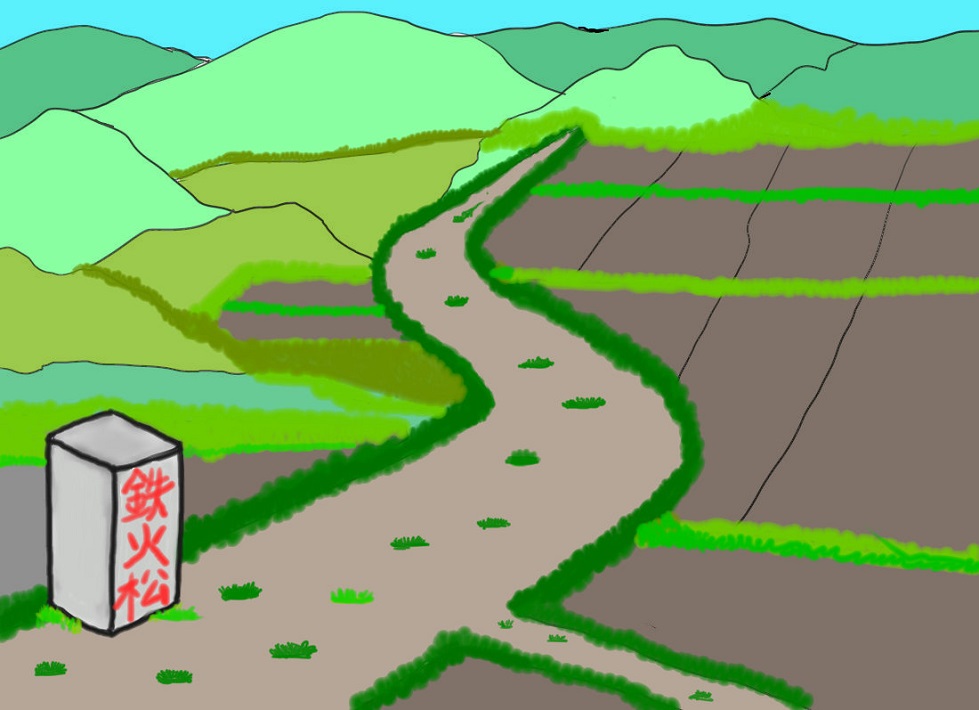 I↑次に早野の代表が灼熱の棒をギュッと握った。何時までも握っていた。これで早野村の主張が通り、現在の石碑の所に目印に松の木が