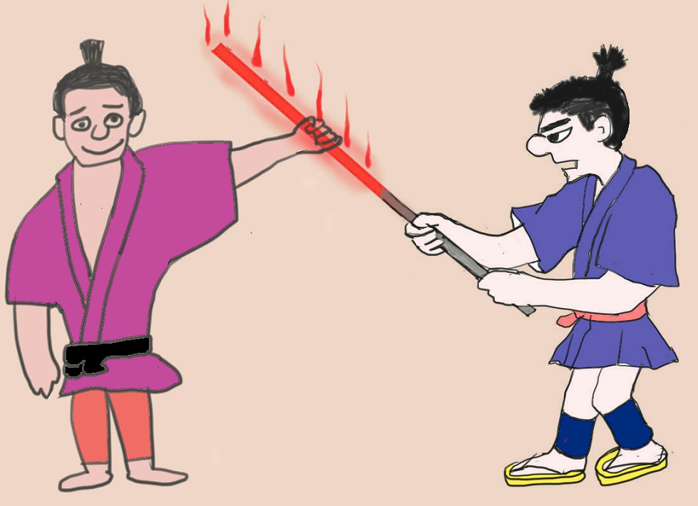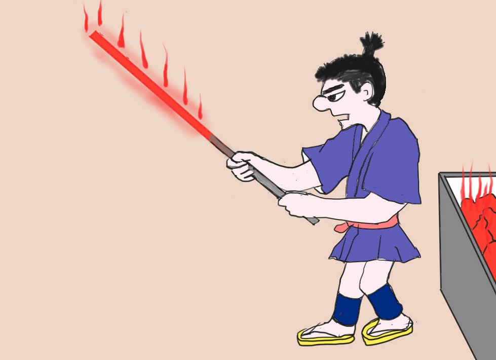 G↑「鉄火の法」とは鉄の棒を灼熱(しゃくねつ)に焼きこの棒を握らせる、と言うのです。もし主張が正しければ灼熱に焼かれた棒は熱くなく