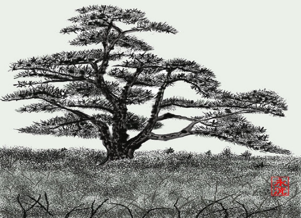 1本だけが昭和の時代まで生き続けました。この松は胴周り6m余り、高さは30m余りあり、その姿は盆栽を大きくしたような形で、