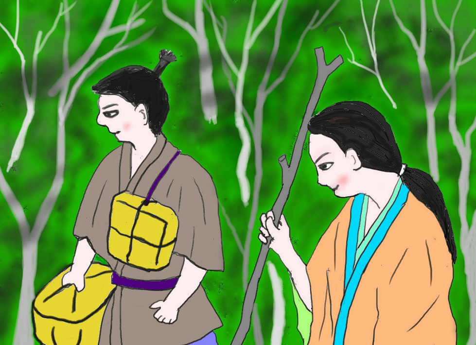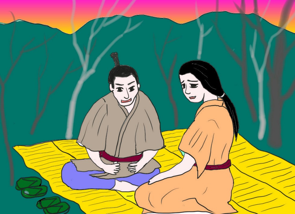起こし産気づいてしまった。生三郎はおどろいたが山林の中なので人家も見当たらず、まして方角も分からずそのまま一夜を過ごす事とした。